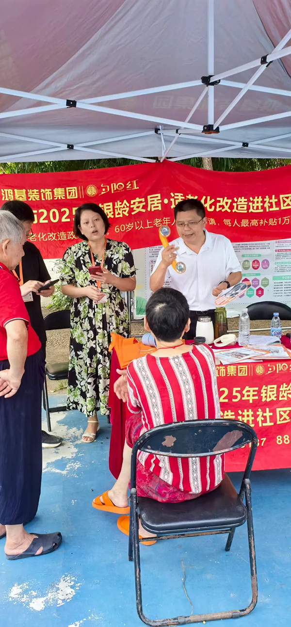 此次活動(dòng)通過(guò)面對(duì)面、零距離的溝通方式,讓更多老年人了解適老化改造的重要性與政策福利,更切實(shí)解決了老年群體及其家庭的實(shí)際困惑,將關(guān)愛(ài)落到實(shí)處?;顒?dòng)現(xiàn)場(chǎng),鴻基裝飾集團(tuán)董事長(zhǎng)胡克偉表示:“后續(xù)集團(tuán)還將持續(xù)關(guān)注社區(qū)老年群體需求,憑借專業(yè)的設(shè)計(jì)與施工能力,為符合條件的家庭提供更優(yōu)質(zhì)的適老化改造服務(wù),讓“養(yǎng)老”變“享老”,為老年居民打造安全、便捷的居家環(huán)境”。